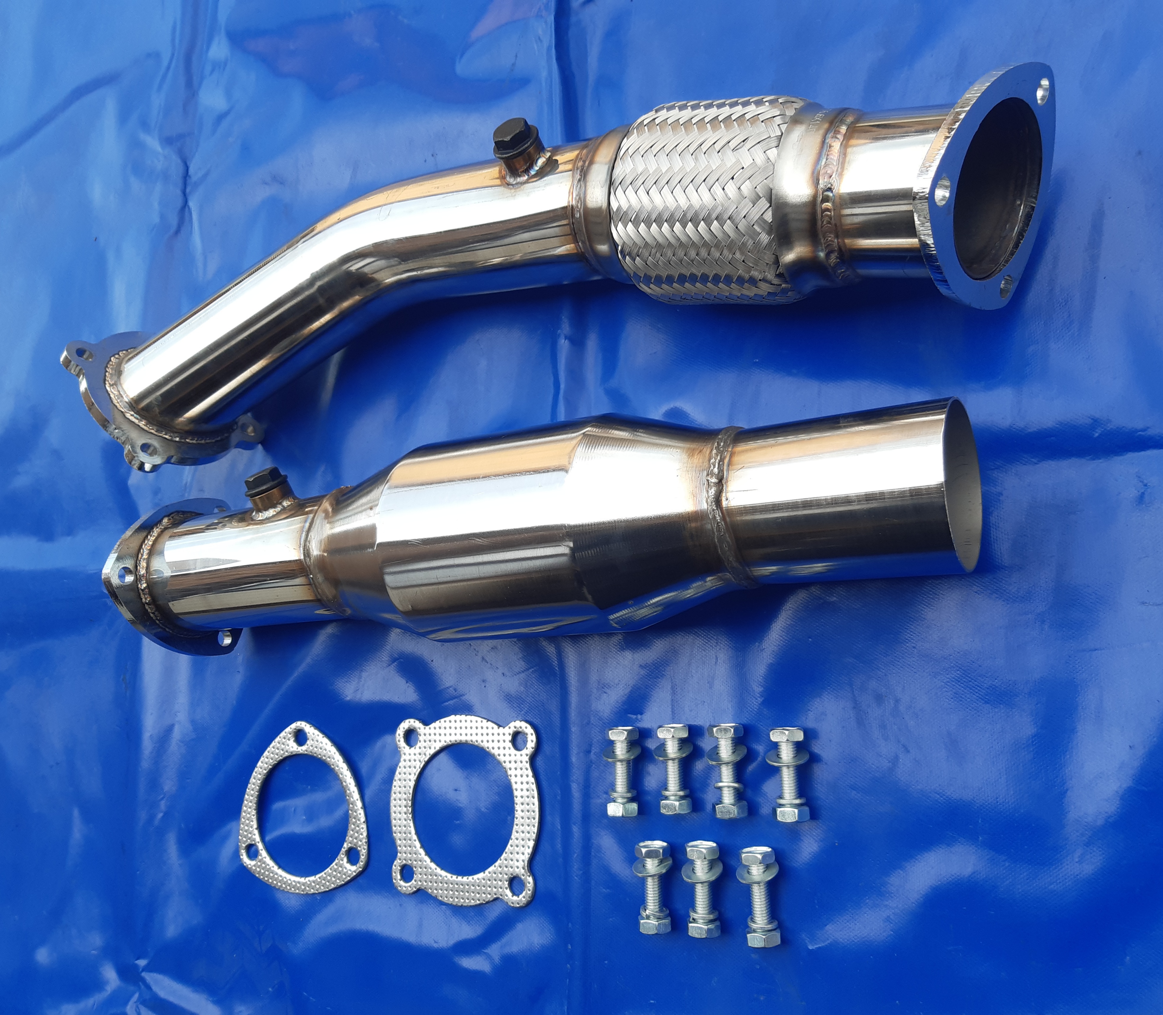 Downpipe mit 100 Zeller Kat und mit 76er Anschluss für die Auspuffanlage.