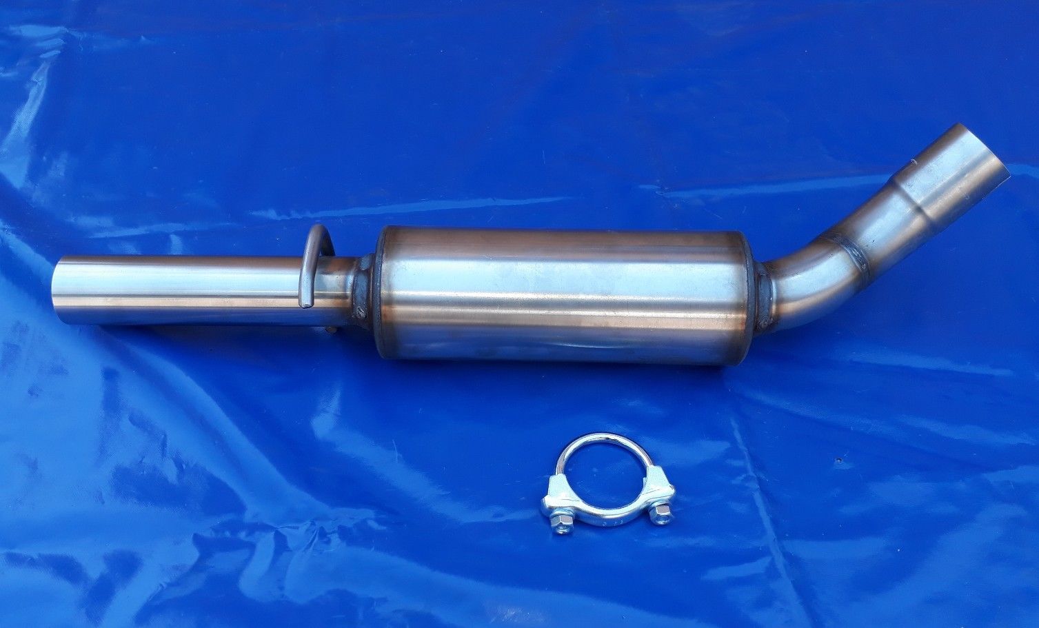 Neuen Powersprint Endschalldämpfer für den Opel Kadett C GTE. Der Endschalldämpfer ist aus Edelstahl und hat einen Außendurchmesser von 60 mm.