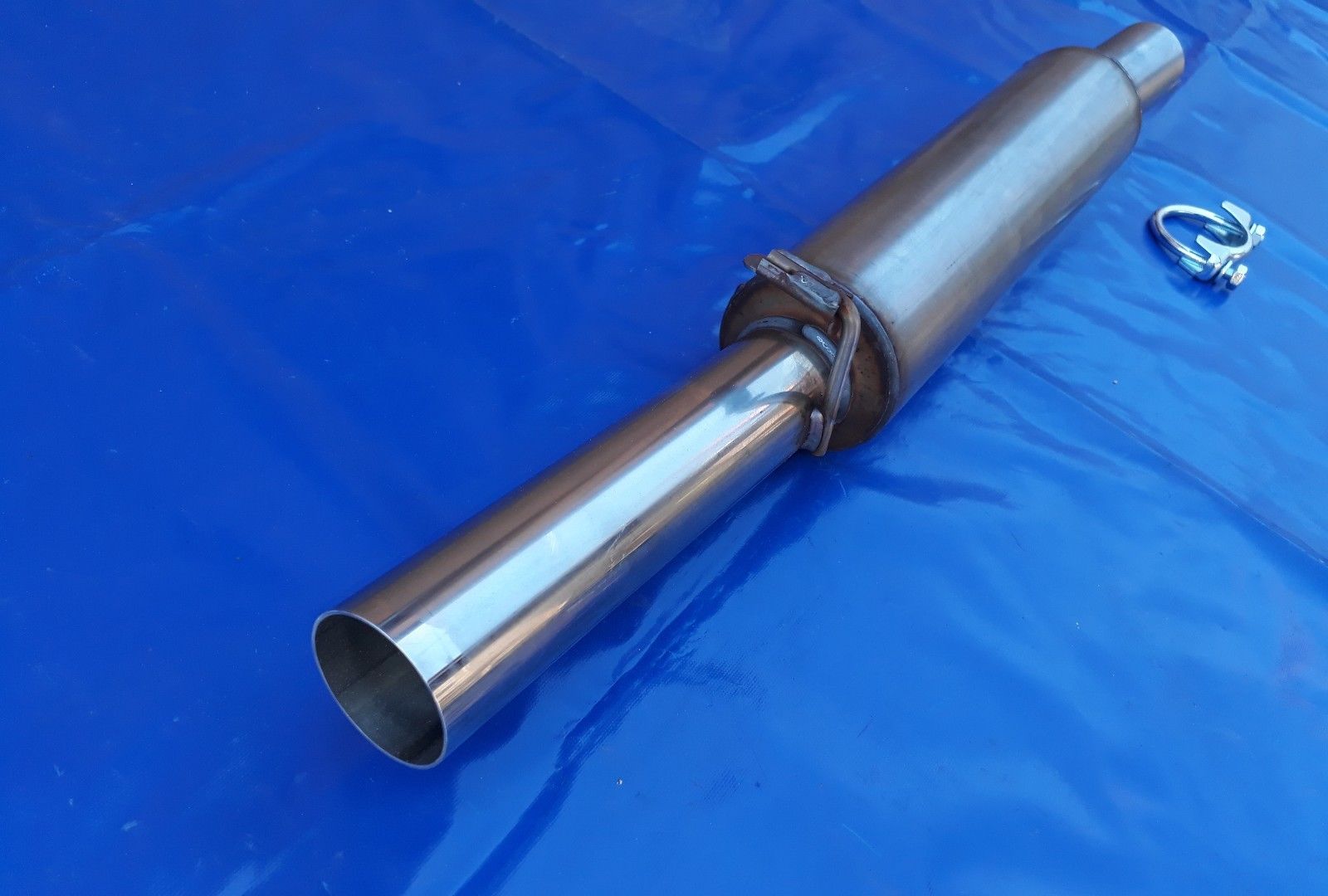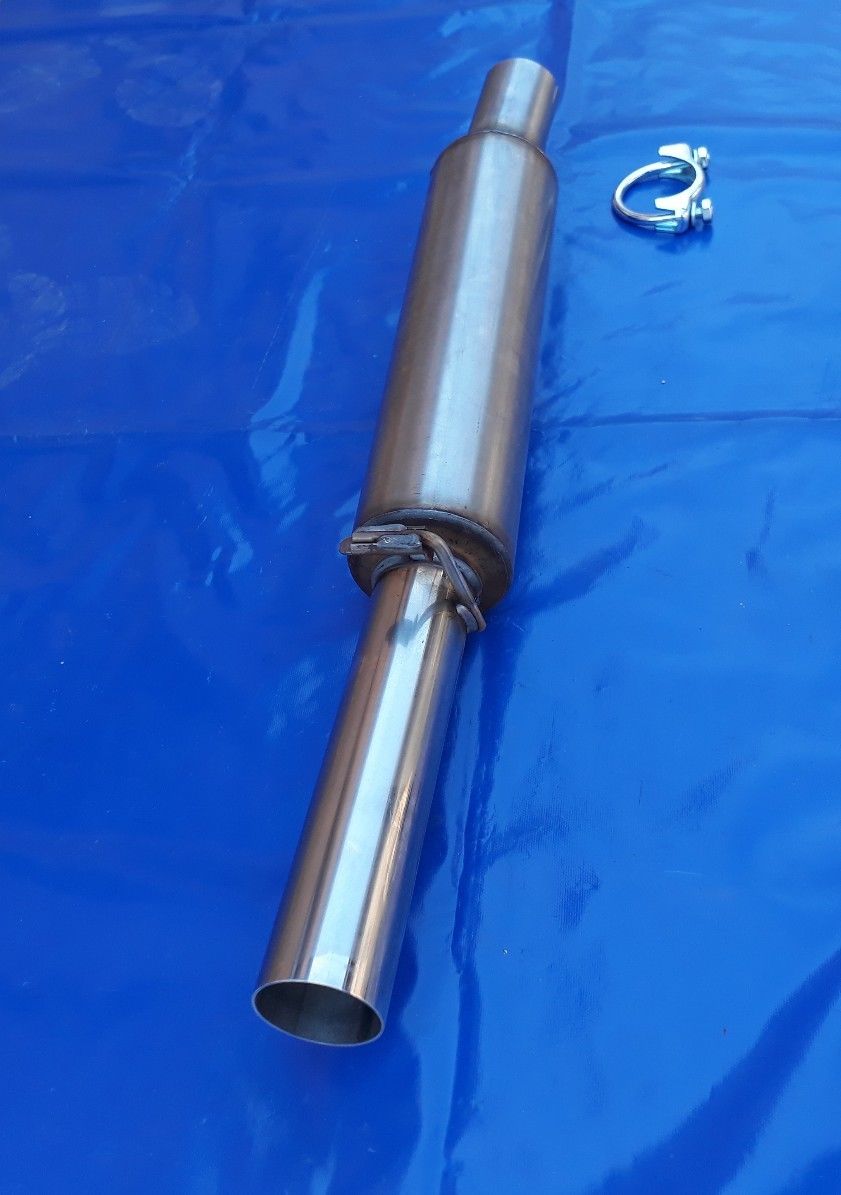 Der Endschalldämpfer ist aus Edelstahl und hat einen Außendurchmesser von 60 mm.