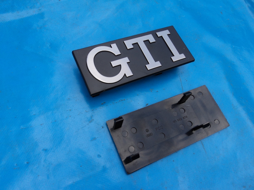 Neuer Schriftzug für den Kühlergrill. Der Schriftzug wird in den Kühlergrill geklickt, auf der Rückseite sind 4 Nasen. Das Schild ist 12,5 cm lang und 5,5 cm hoch. Original VW-Teil NR:171 863 679