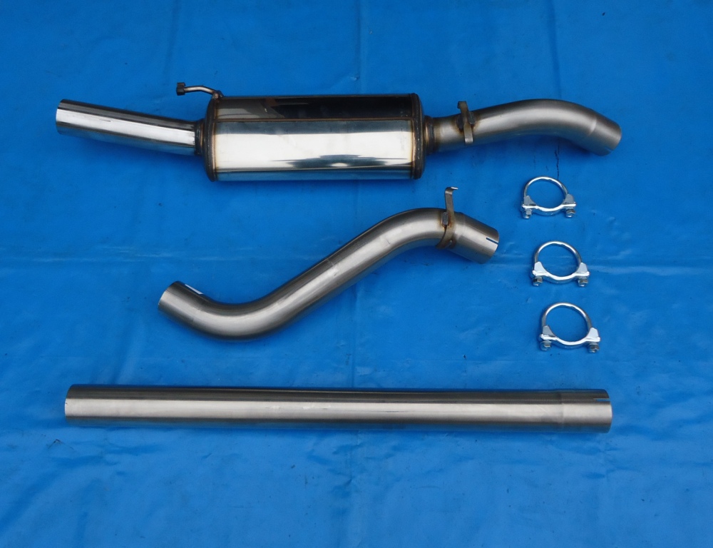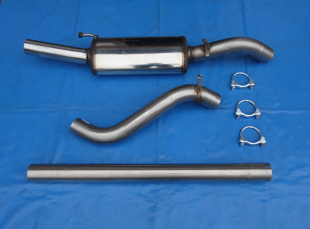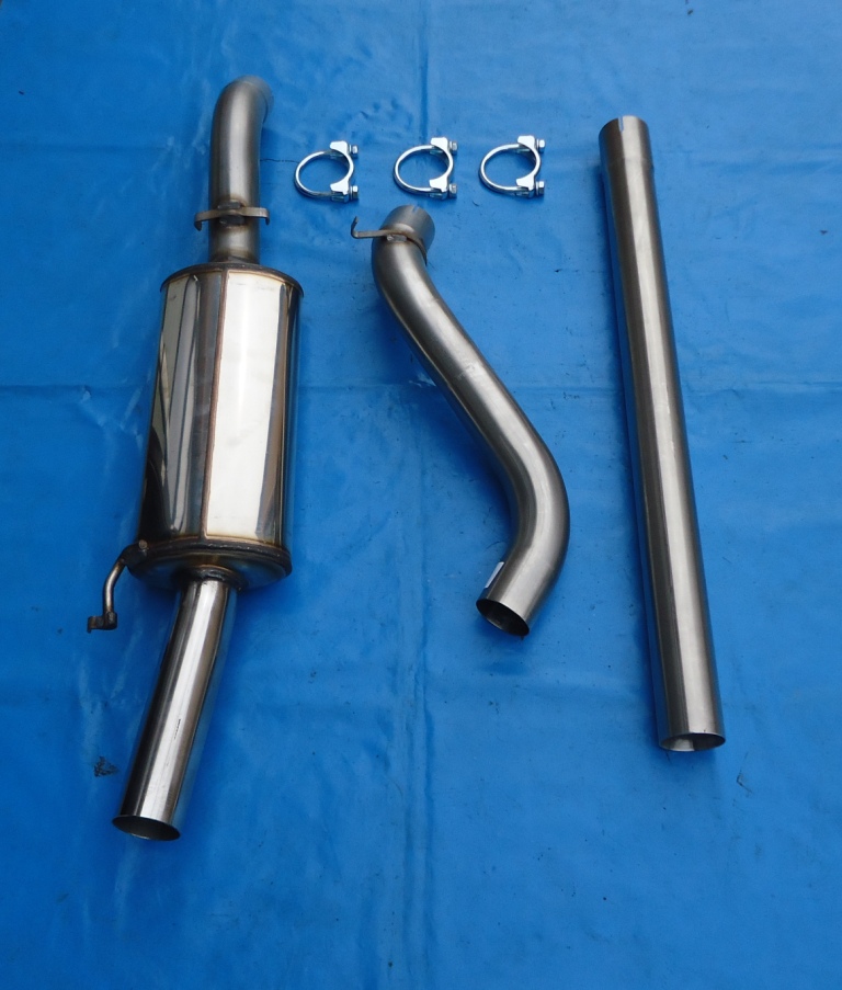 70 mm Durchmesser Edelstahl Auspuffanlage mit Vorderrohr. passend für alle VW Golf 2 (kein Syncro) und VW Corrado 1,8 8v und 16v (kein Syncro).