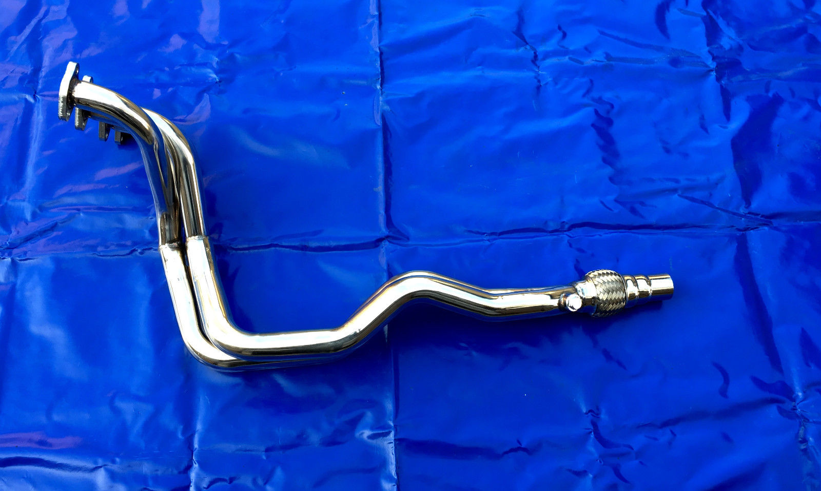 der Fächer ist mit Flexrohr (dadurch wird ein Reißen der Auspuffanlage verhindert,großer Durchlass !!!)